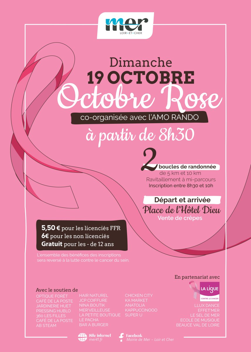 MER > Randonnée octobre rose (en partenariat avec la ville de Mer) organisée par : AMO Rando Val de Mer 41 – 0635976115