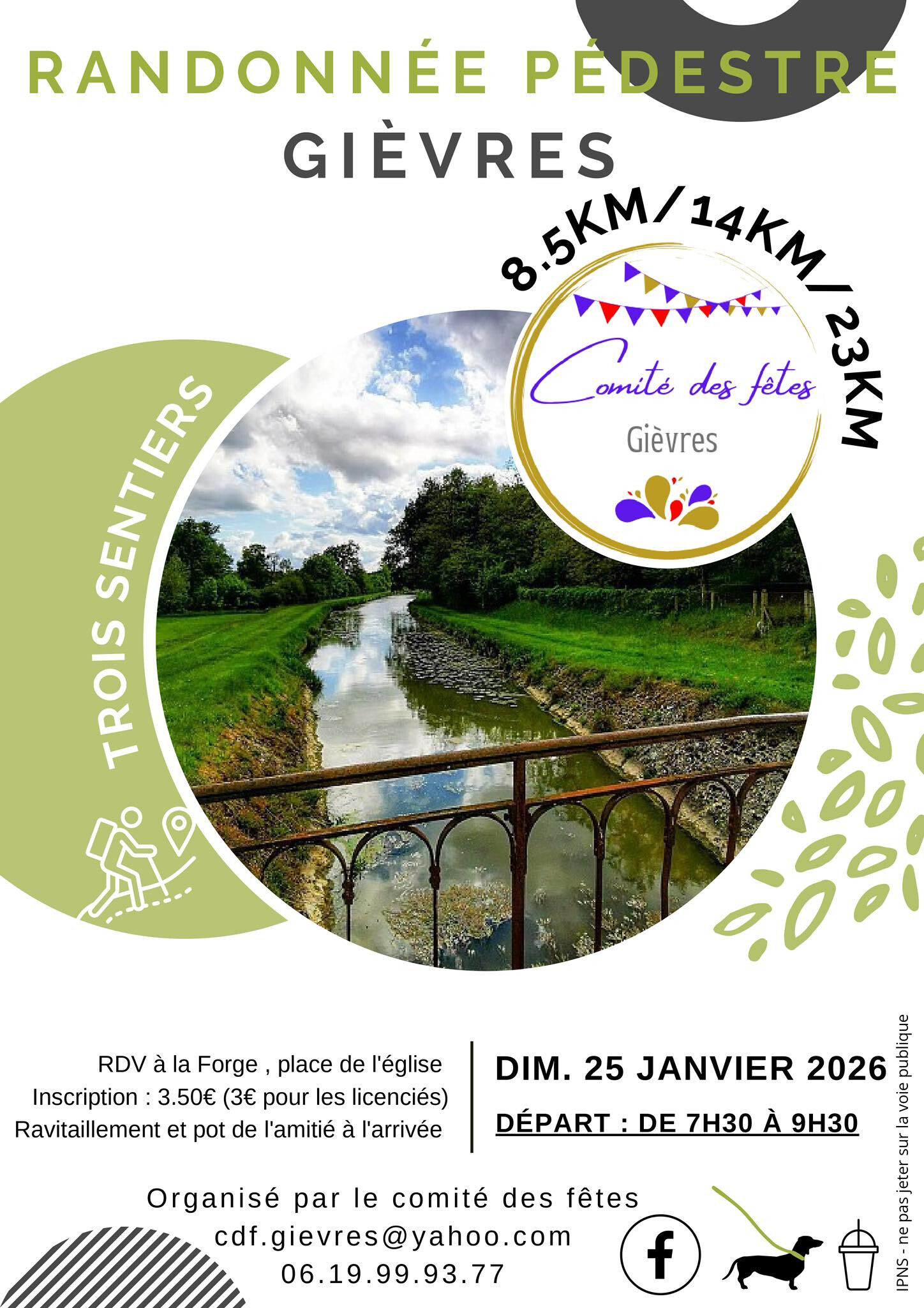 Affiche randonnée Gièvres dimanche 25 janvier 2026